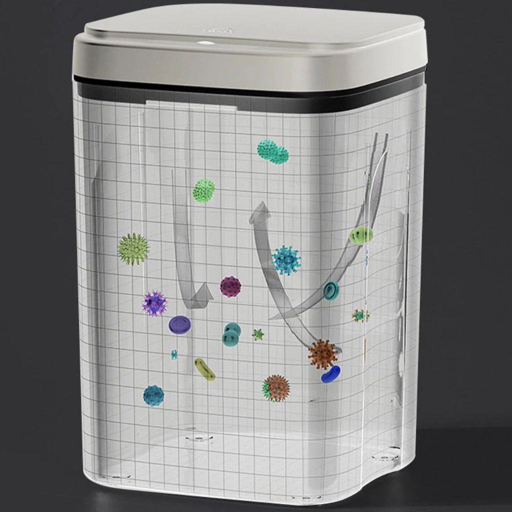 Equipada com sistema inteligente de resposta dupla, ela reconhece tanto a aproximação por movimento quanto leves vibrações no corpo da lixeira.