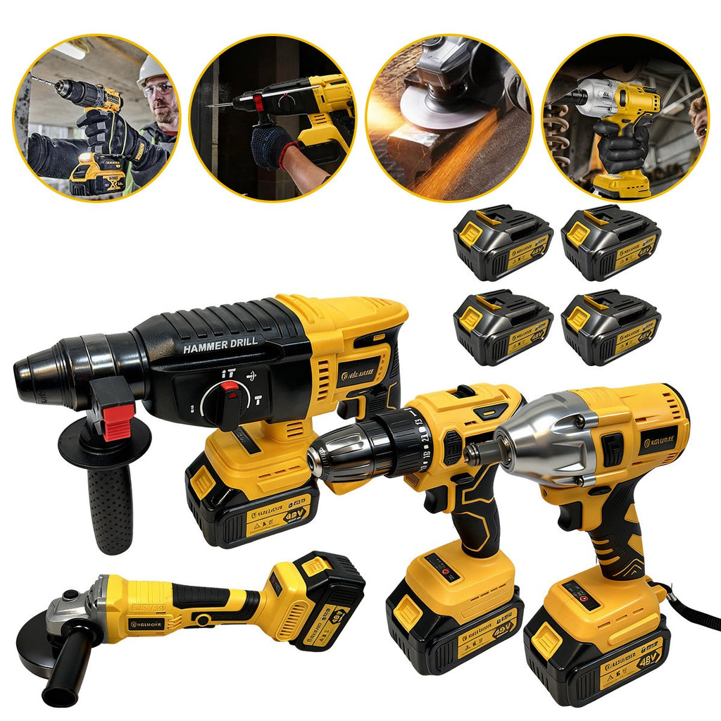✅ Arsenal Completo: Furadeira, Martelete, Chave de Impacto e Esmerilhadeira — uma oficina inteira na sua mão.